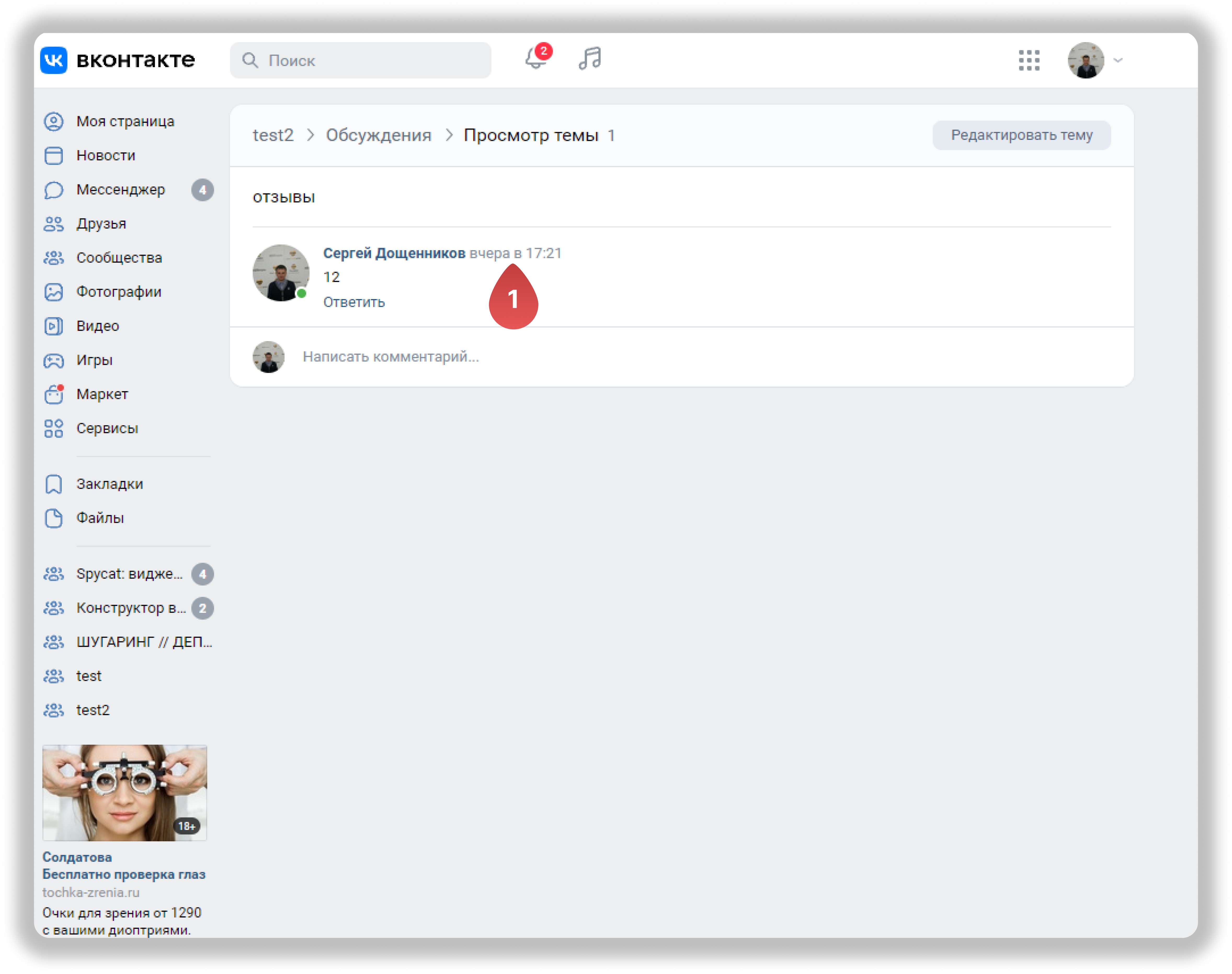 **Шаг 3.** Зайдите в отзывы вашей группы и выберите нужный отзыв.